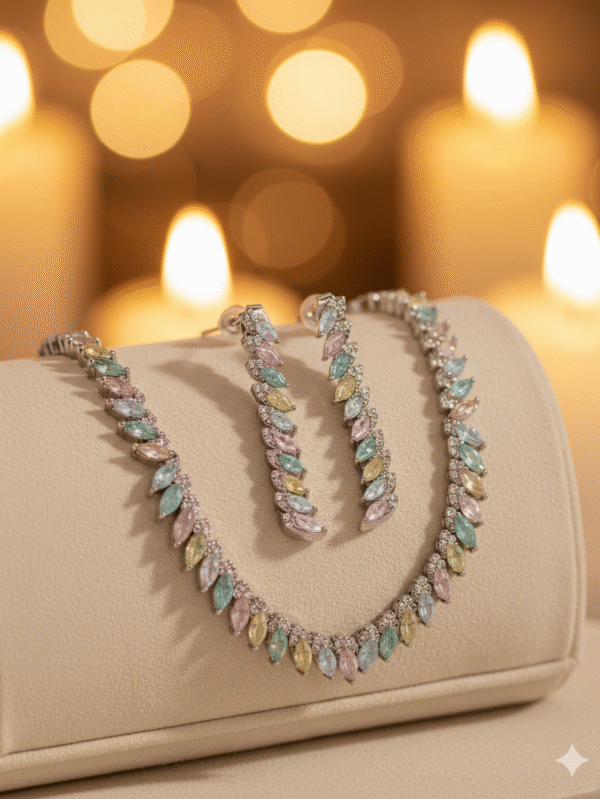 Pastel Leaf Elegance Silver Set