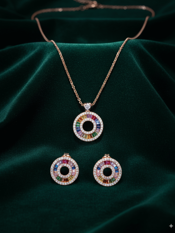 Rose Gold Enamel Pendant & Earrings Set