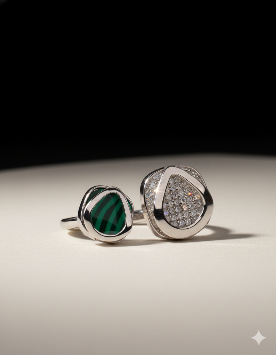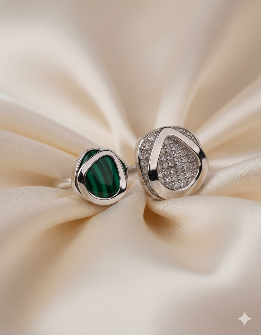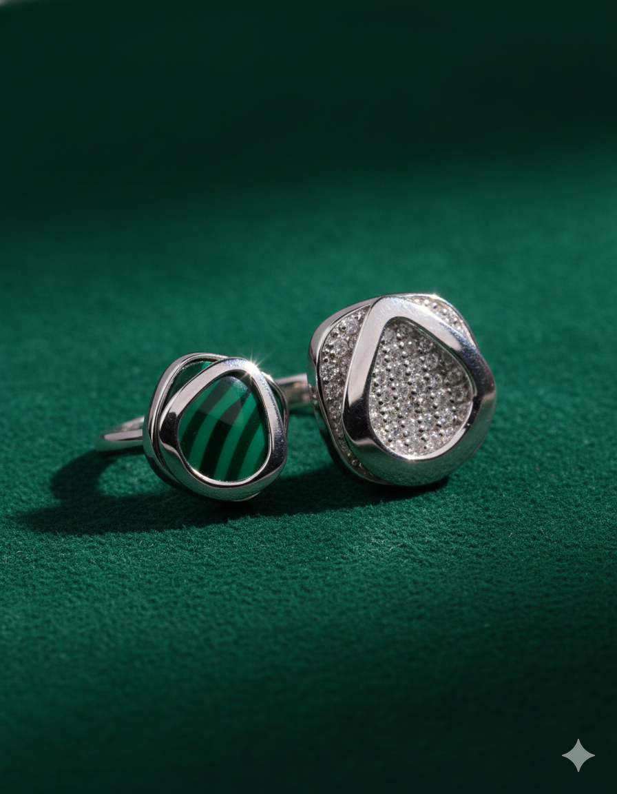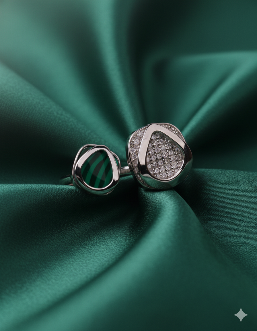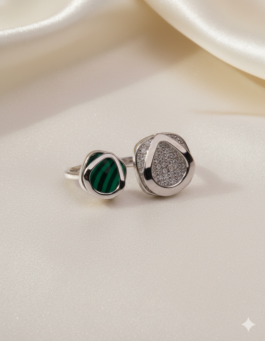 Dual Essence Malachite & Crystal Silver Ring