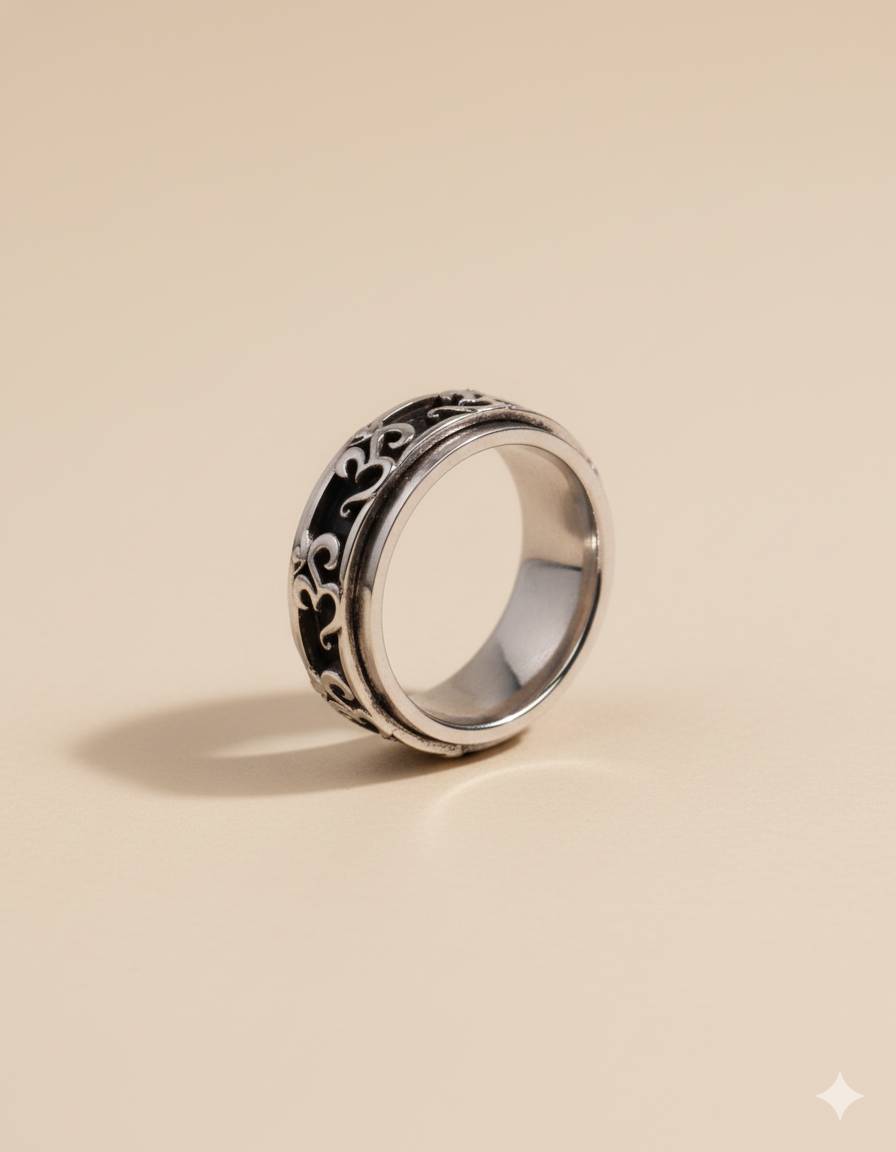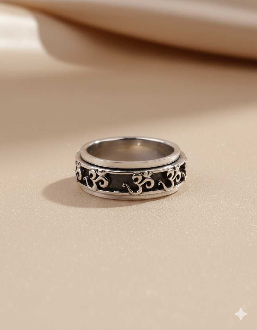 Silver Om Engraved Spiritual Band Ring